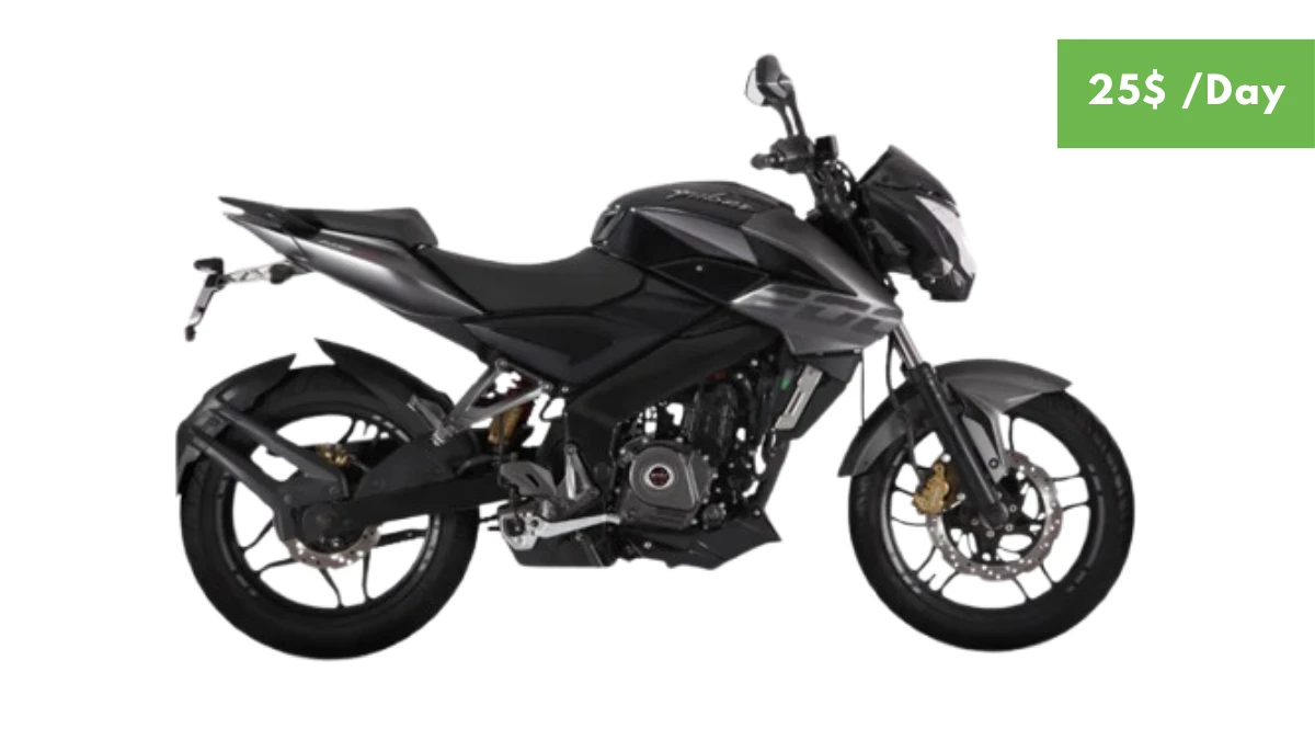 The Bajaj Pulsar NS200 is a sporty naked motorcycle designed for city riding, highways, and spirited weekend rides. It comes with a 199.5cc liquid-cooled engine, 6-speed gearbox, and fuel injection for strong performance. The bike is known for its aggressive styling, quick acceleration, sharp handling, and sporty riding position. It is a practical option for riders who want a powerful motorcycle for daily commuting, highway touring, and occasional spirited riding.