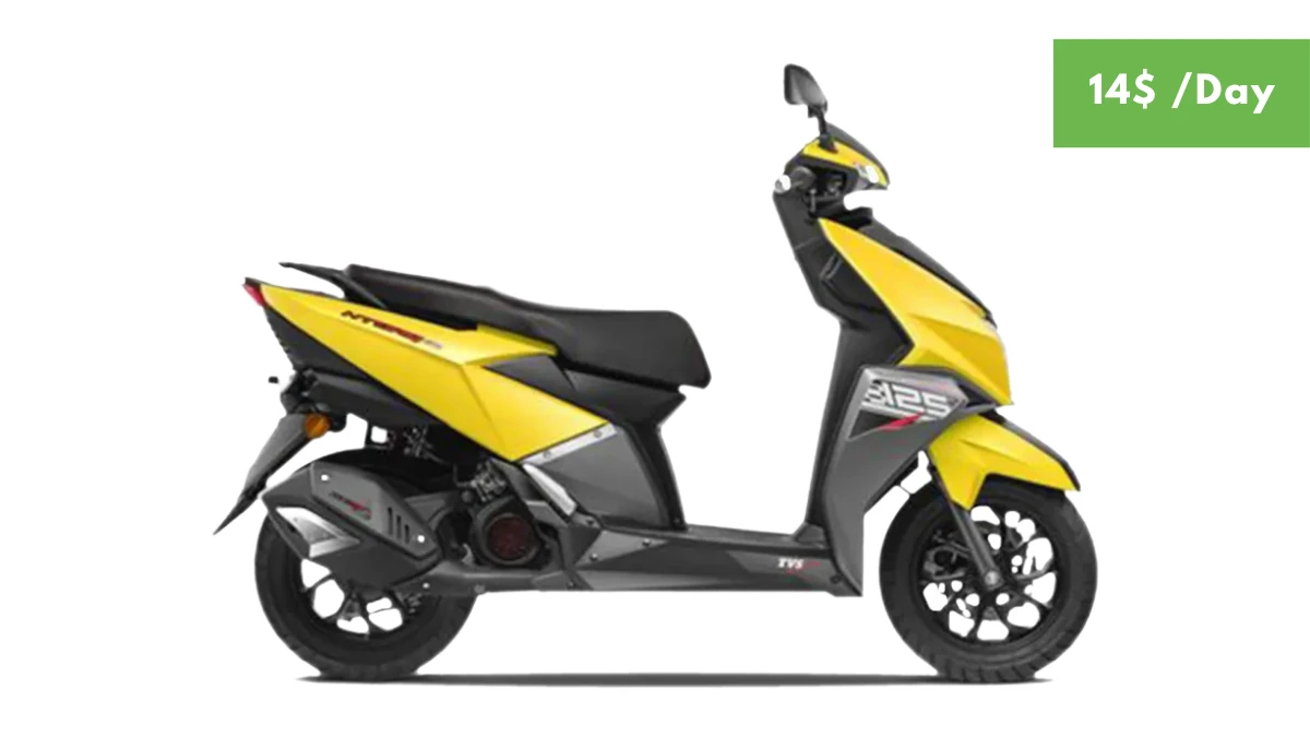 The TVS Ntorq 125 is a sporty scooter designed for city riding and everyday commuting. It comes with a 124.8cc air-cooled engine, CVT automatic transmission, and fuel injection for smooth performance. The scooter is known for its aggressive styling, quick pickup, light handling, and modern features. It is a practical option for riders who want a stylish scooter for daily commuting, short rides, and occasional highway use.