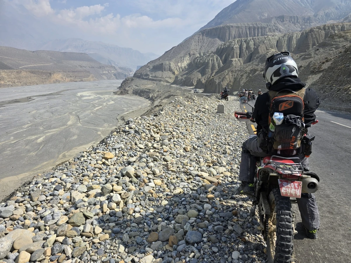 Your adventure begins with a scenic ride from Pokhara, passing through the charming town of Beni and the lush valley of Tatopani. The route gradually climbs into Mustang’s rugged terrain, offering a mix of paved roads, dirt trails and steep inclines. En route, riders witness cascading waterfalls, apple orchards in Marpha, traditional stone villages and the first glimpses of Mustang’s stark desert beauty. The ride is challenging yet rewarding, preparing you for the higher altitudes ahead.